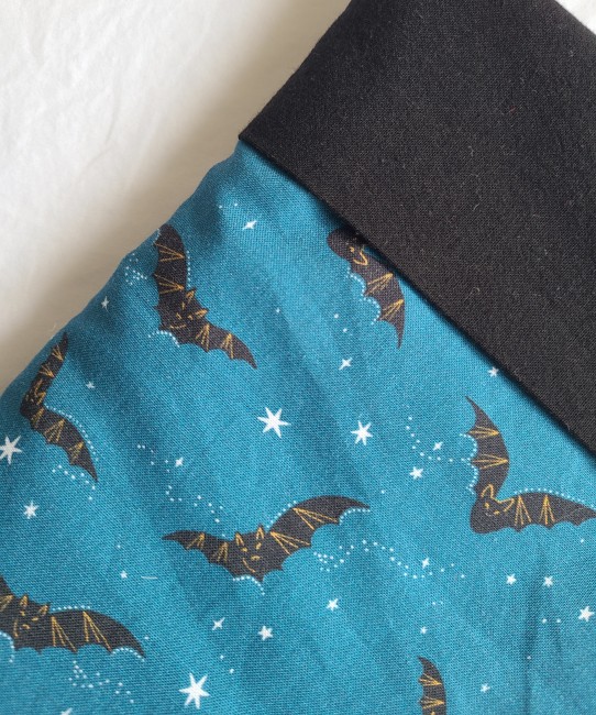 L'intérieur de la pochette et le rabat sont réalisés dans un tissus uni assorti au tissus extérieur.