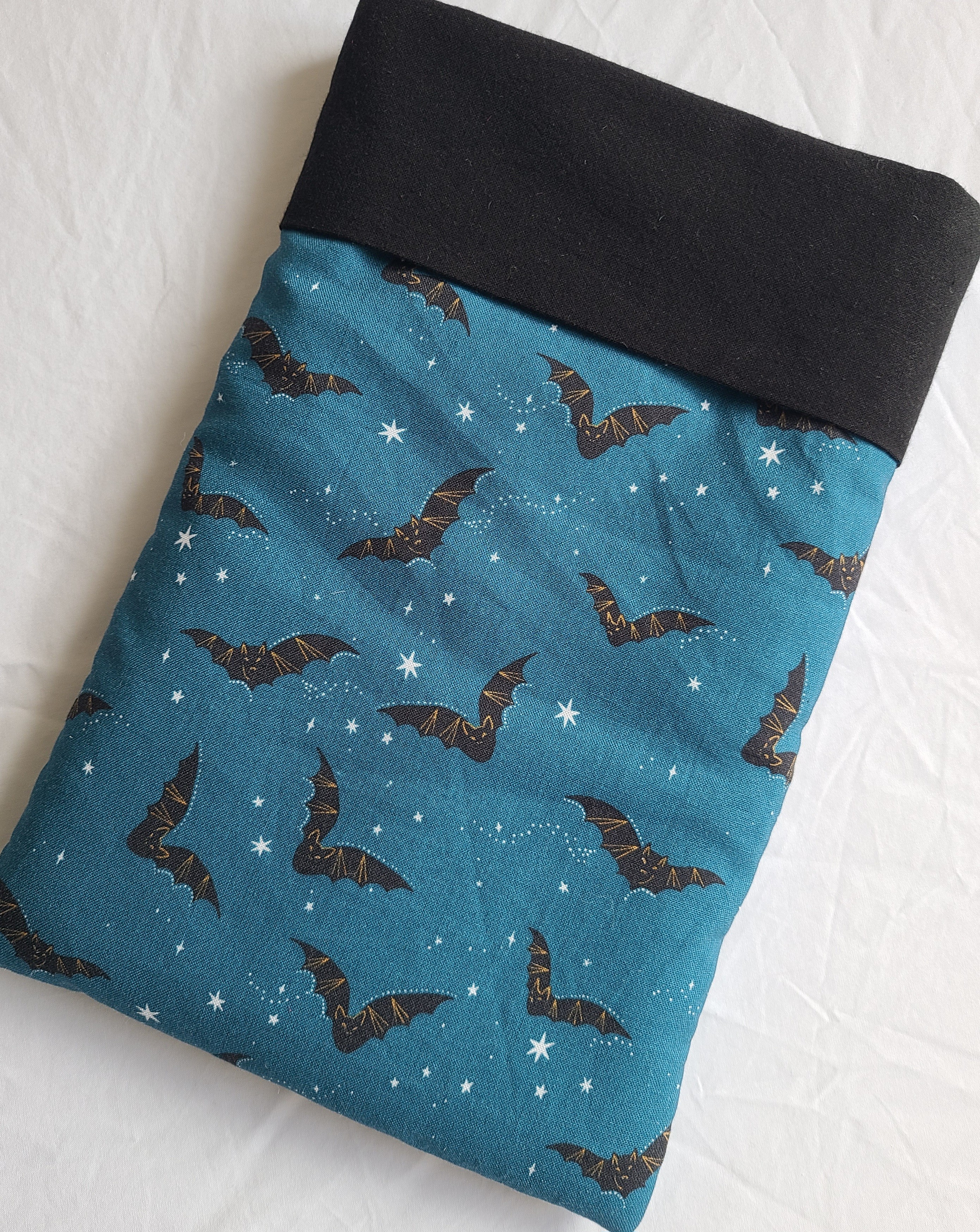 Le rabat de la pochette permet sa fermeture sans pression ou cordon. Le livre ou la liseuse ne peuvent tomber de la pochette.