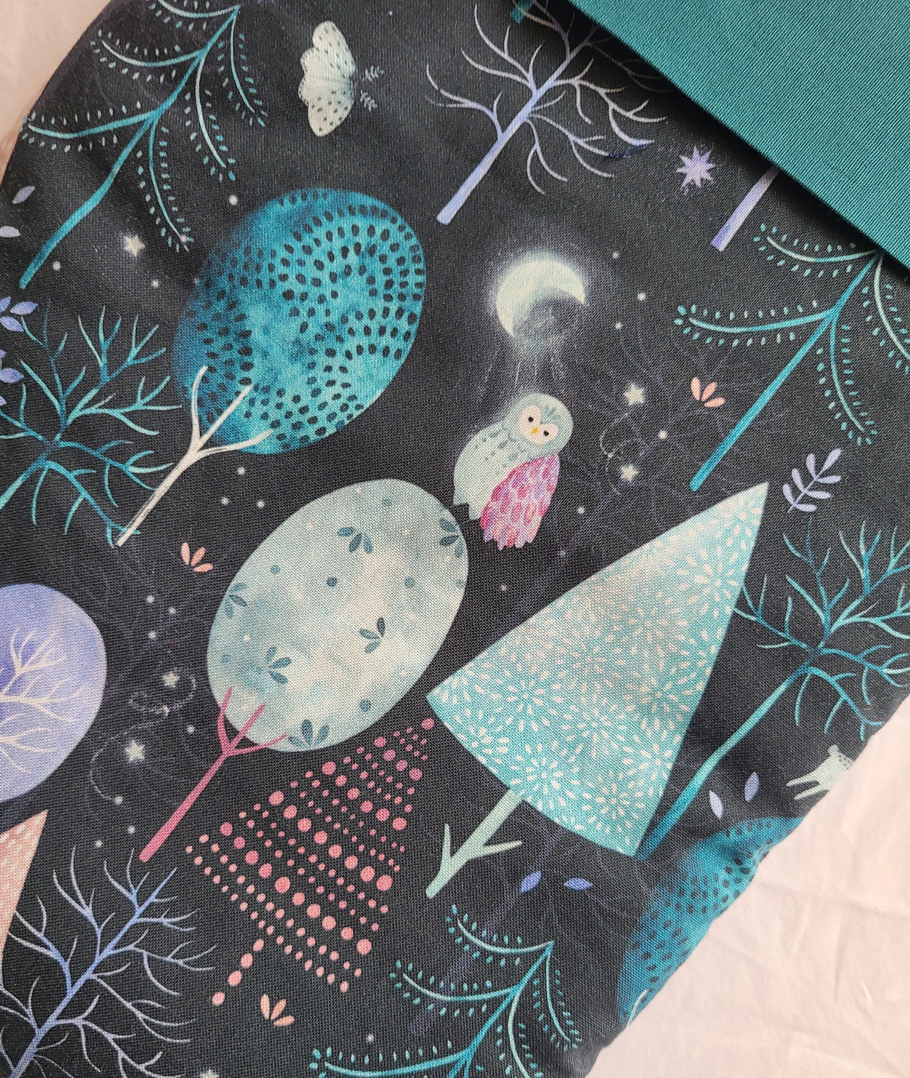 L'intérieur de la pochette et le rabat sont réalisés dans un tissus uni assorti au tissus extérieur.