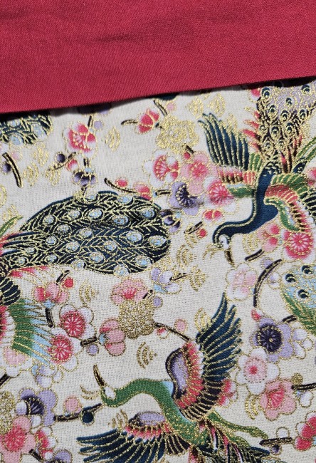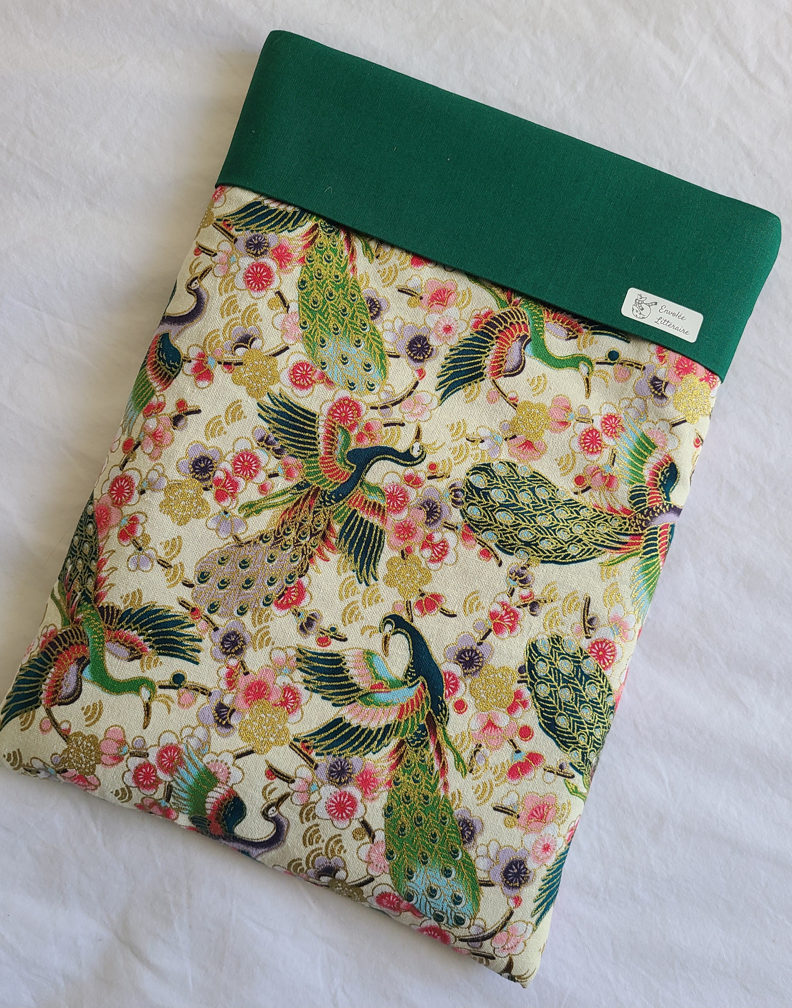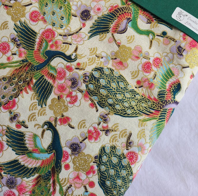 Pochette aux motifs japonnisants ( grues fond ecru) avec des dorures.
