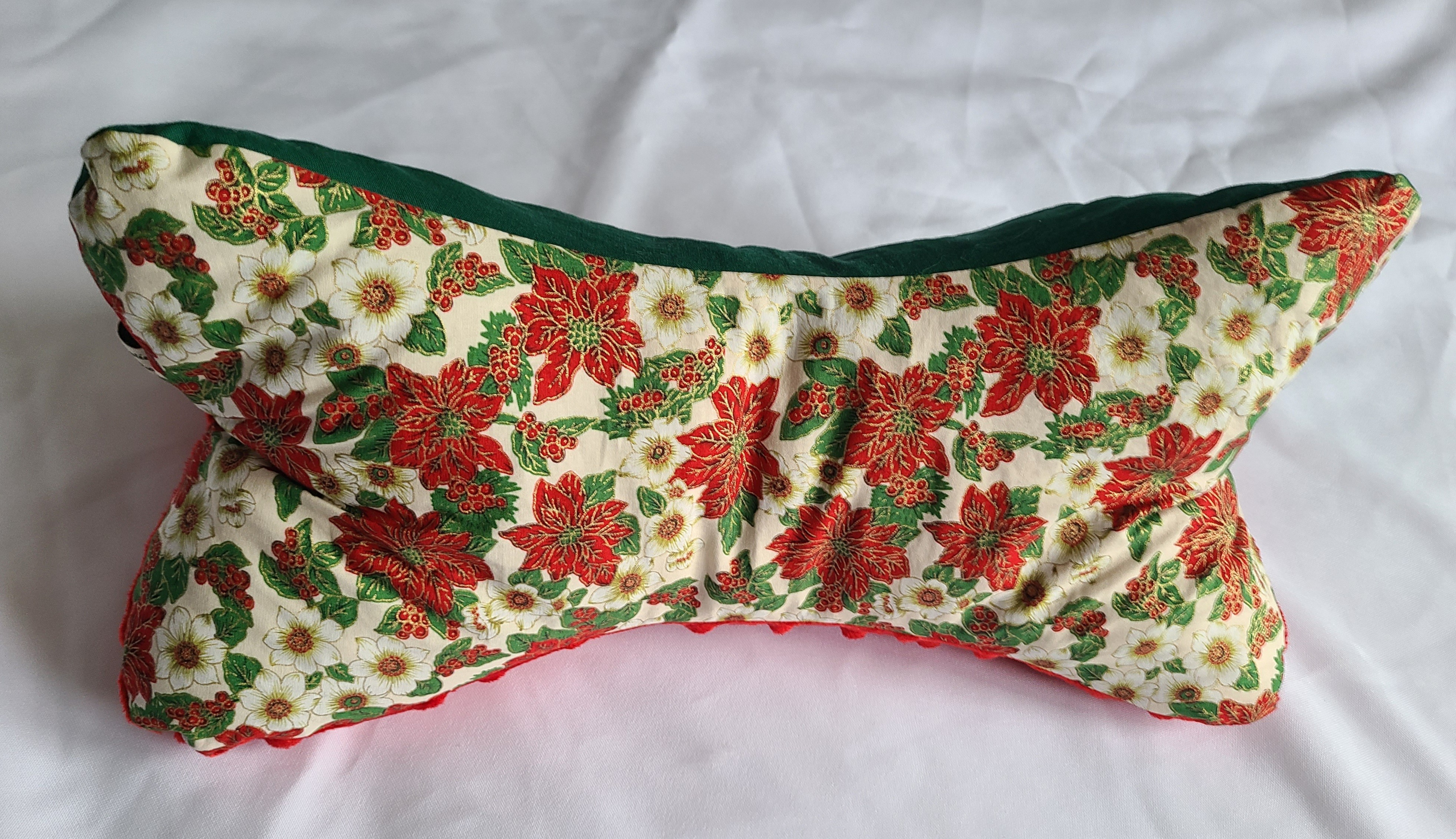 Coussin de lecture avec trois tissus différents (Cotons, Minky), intérieur en fibres polyester. Lavable à 30 °C