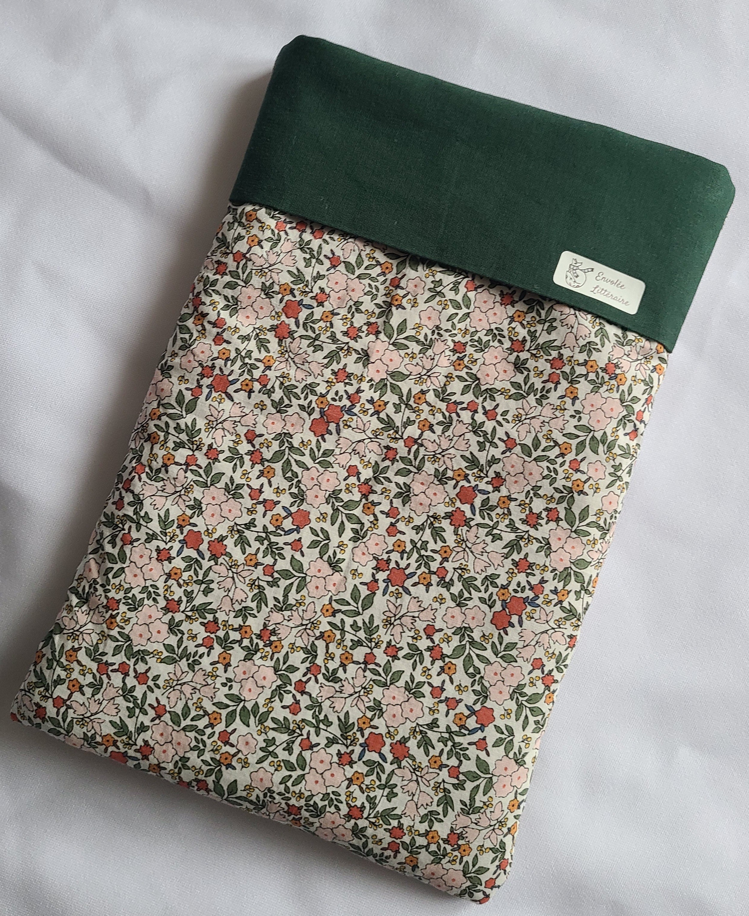 Le rabat de la pochette permet sa fermeture sans pression ou cordon. Le livre ou la liseuse ne peuvent tomber de la pochette.