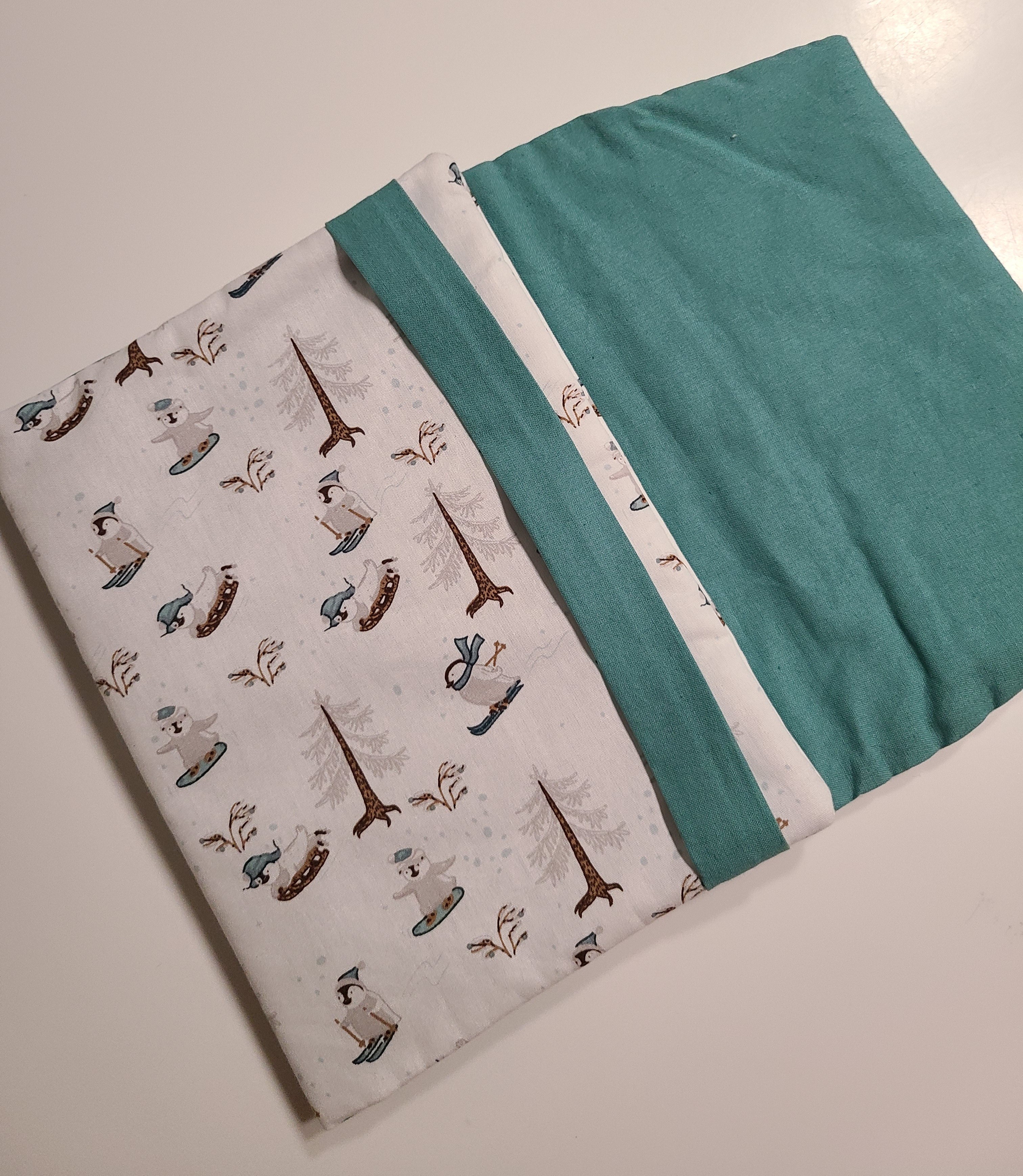 Couverture de livre faite mains, aux motifs de pingouins et hiver