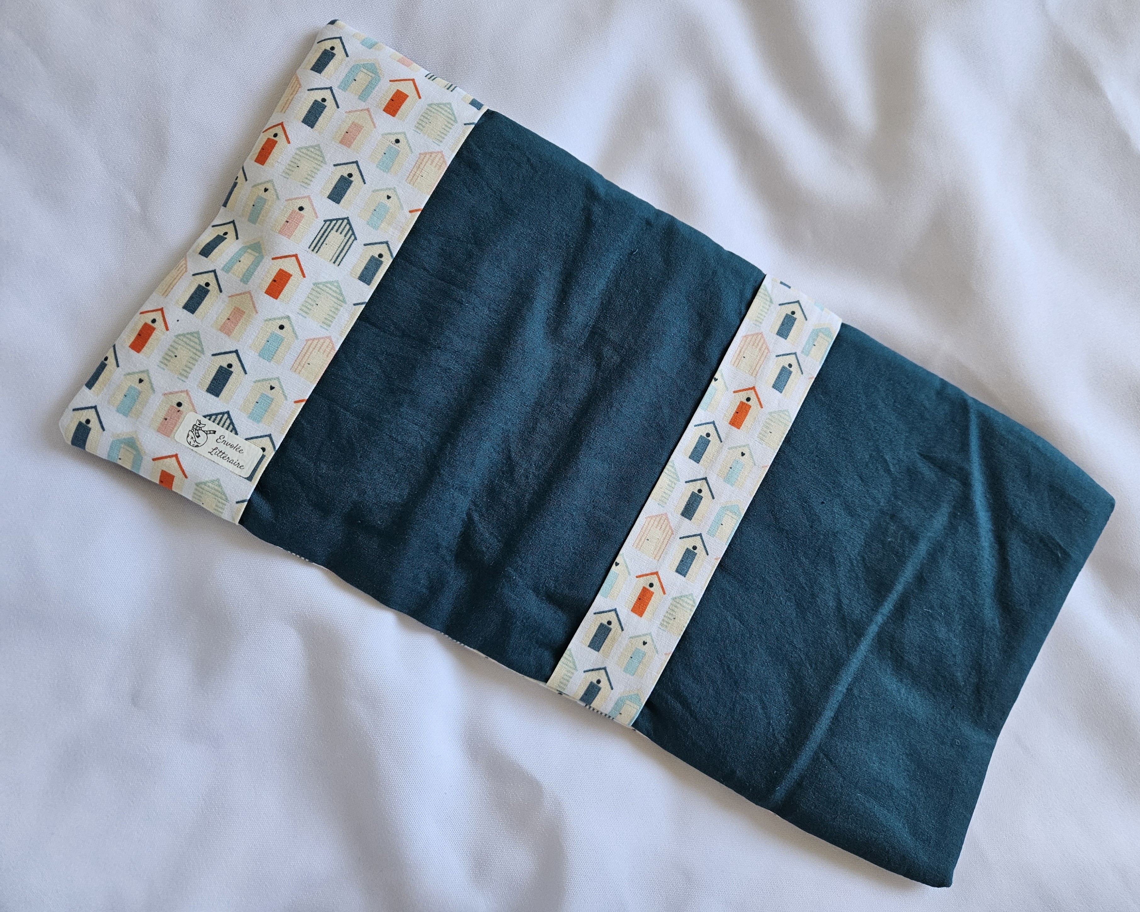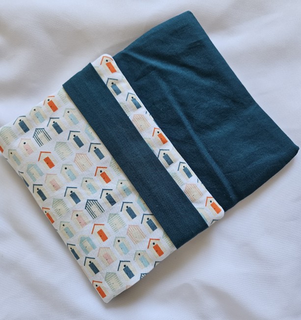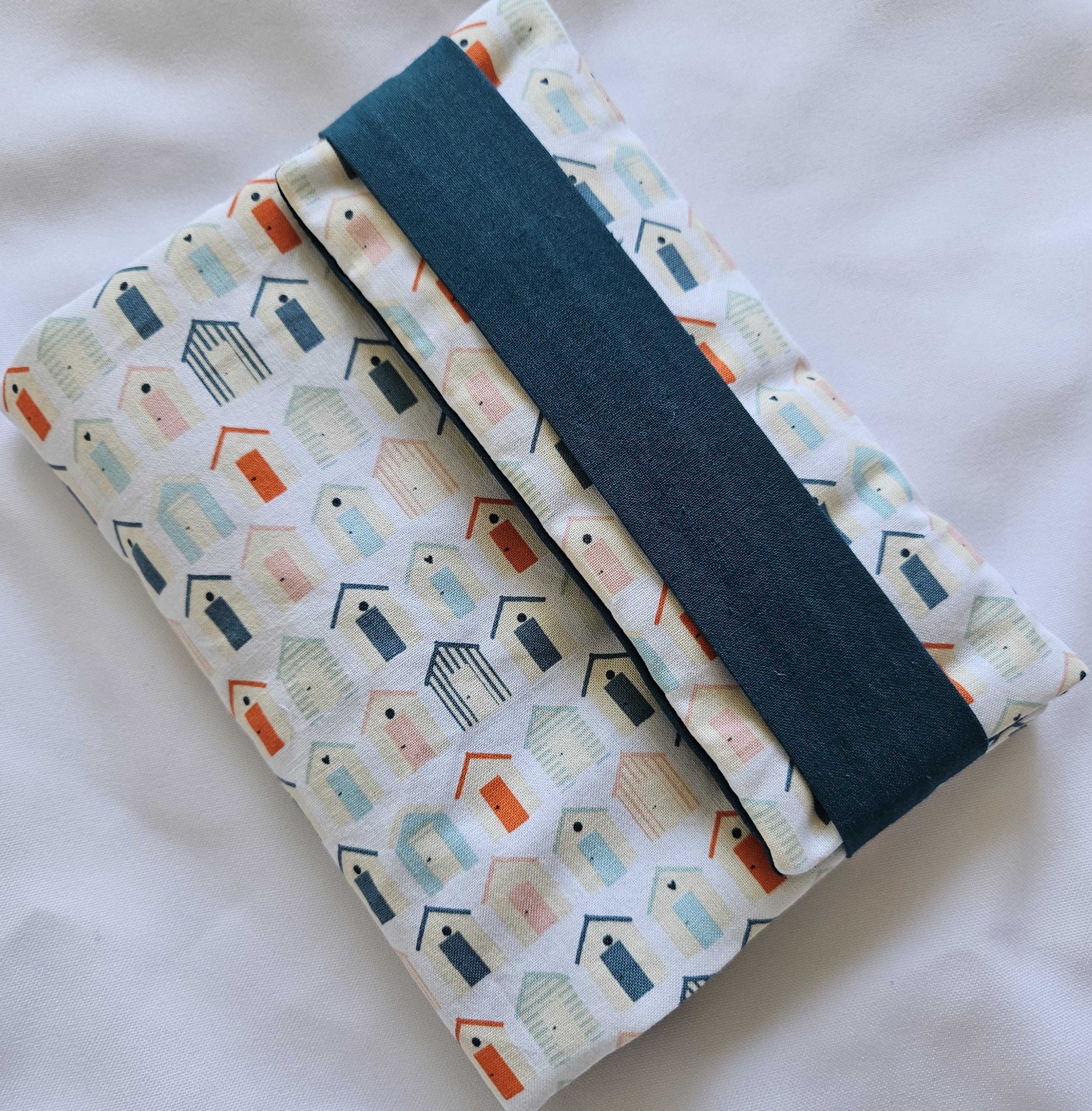 Couverture de livre faite mains, aux motifs de cabanes de plages fond blanc